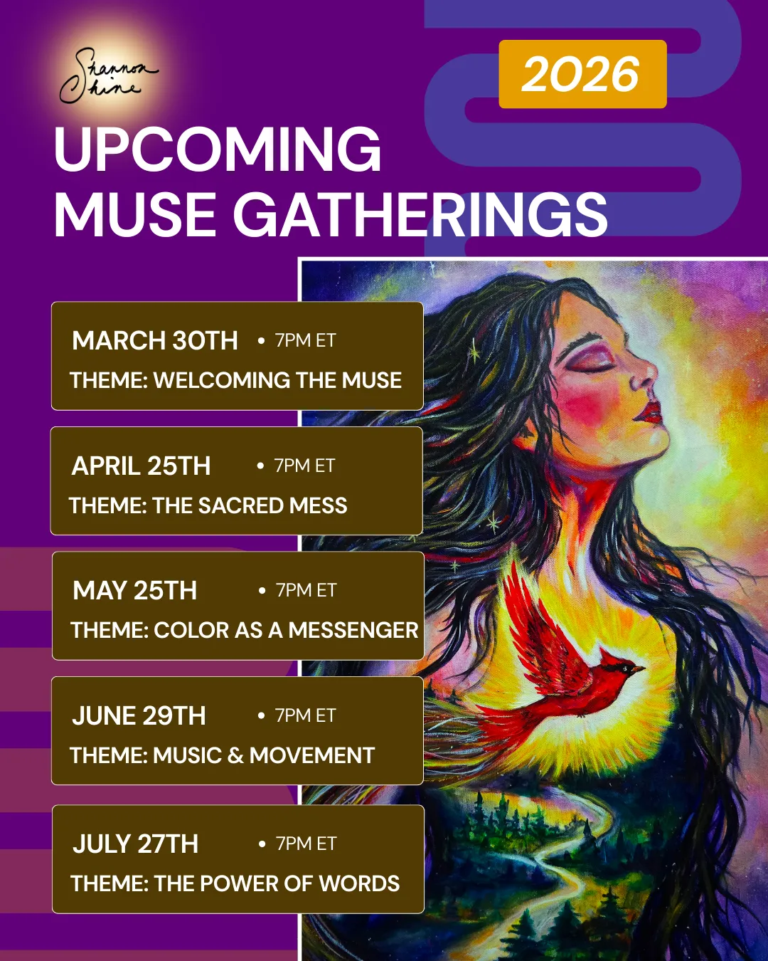 Whether you're feeling stuck, inspired, or simply seeking connection this is a space to tune into your inner creative and connect with the Muse, create from the heart, and make new friends.